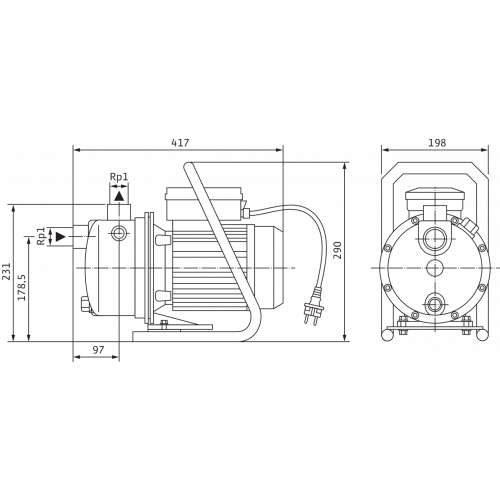 Насос оснащен электродвигателем мощностью 0,37 кВт, что позволяет ему работать с производительностью до 1,8 м³/ч при максимальном давлении 6 бар. Корпус насоса выполнен из чугуна, что обеспечивает его долговечность и устойчивость к коррозии.