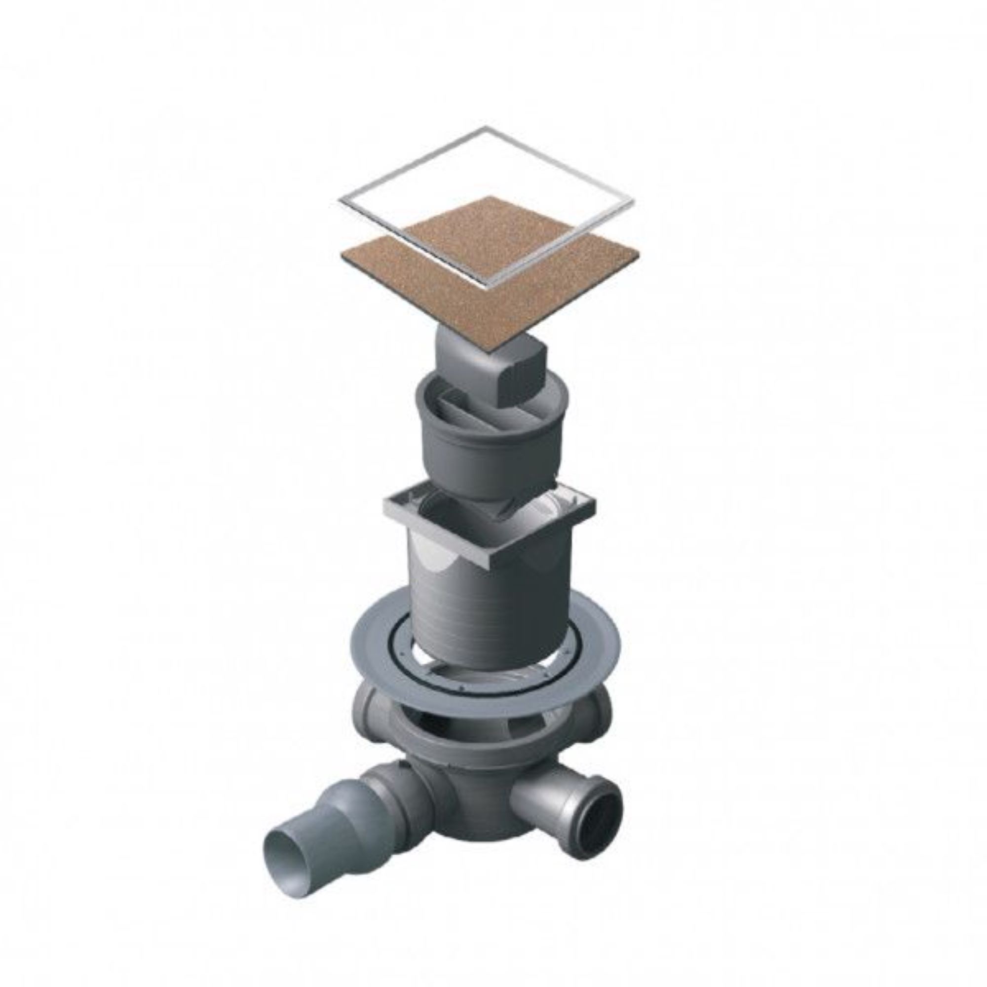 Трап оснащен тремя решетками из керамики золотого цвета, которые придают ему элегантный и стильный вид. Решетки легко снимаются для очистки и ухода за трапом. Кроме того, трап имеет сухой затвор, который предотвращает проникновение неприятных запахов из канализации в помещение.