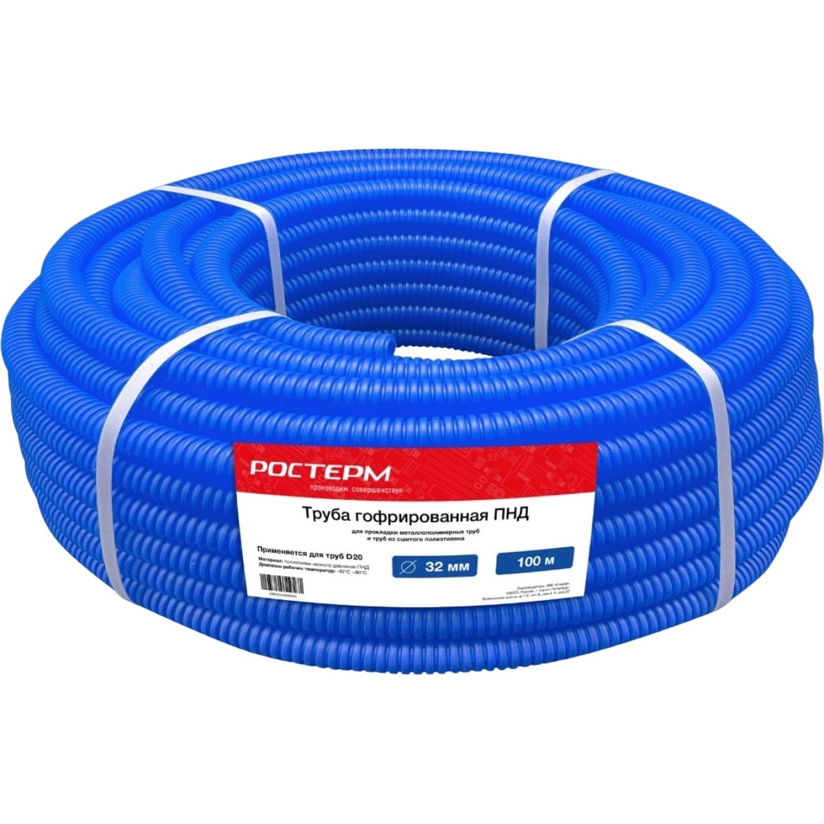 Труба гофрированная РОСТерм ПНД d32 мм, синяя, (100) - это качественный и надежный продукт, который предназначен для использования в системах водоснабжения и канализации. Она изготовлена из полиэтилена низкого давления (ПНД), что обеспечивает ей высокую прочность и долговечность.