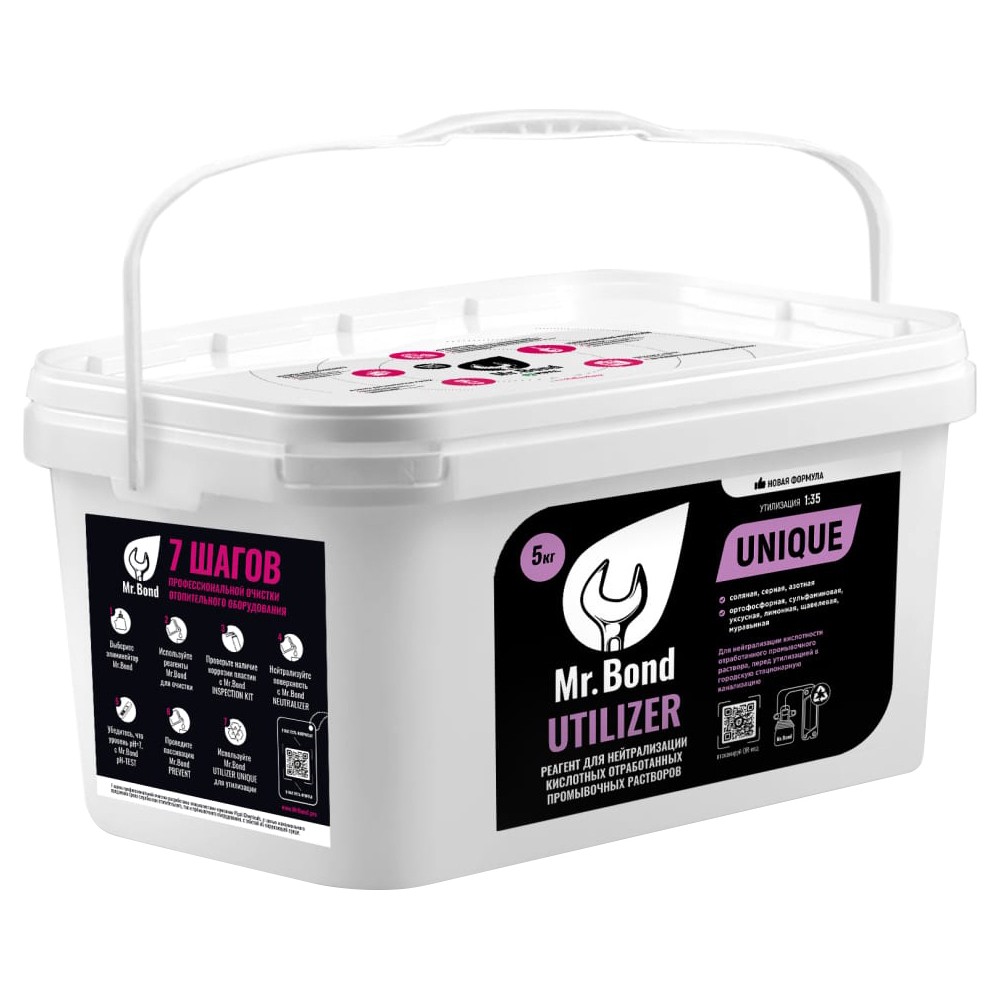 Mr.Bond - это порошкообразный реагент для нейтрализации отработанных реагентов UTILIZER UNIQUE. Он предназначен для использования в различных отраслях промышленности, включая нефтегазовую, химическую и металлургическую. Mr.Bond обладает высокой эффективностью и быстродействием, что позволяет быстро и качественно нейтрализовать отработанные реагенты. Упаковка объемом 5 литров обеспечивает удобство хранения и использования. Mr.Bond - это надежный и безопасный реагент, который поможет вам поддерживать чистоту и безопасность на вашем производстве.