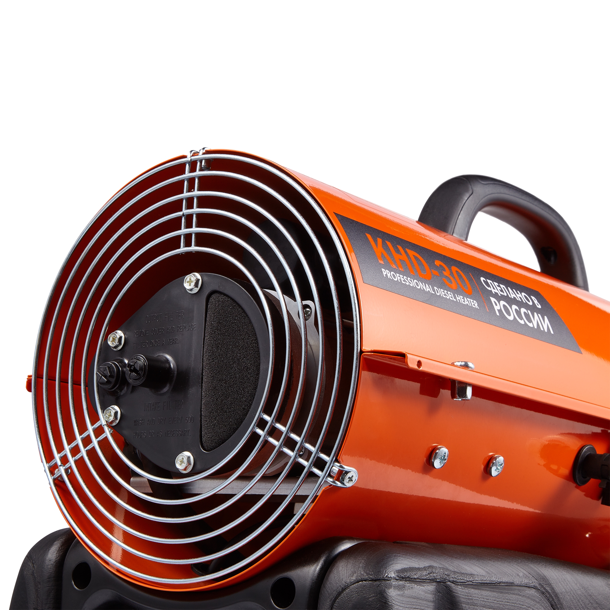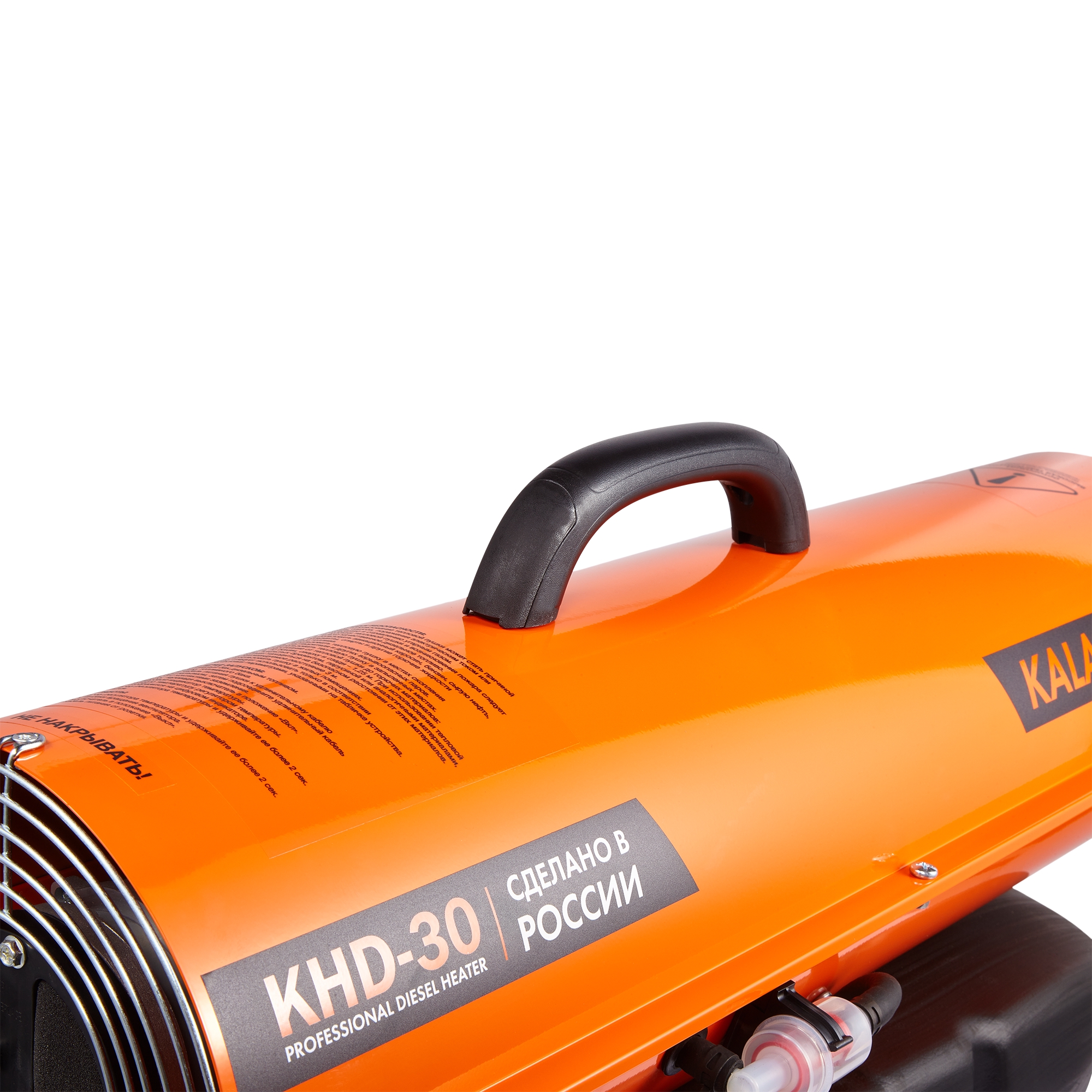 Безопасность использования дизельной тепловой пушки KALASHNIKOV KHD-30 обеспечивает электронная плата управления при помощи температурного датчика и фотоэлемента, контролирующего наличие пламени – прекращает работу прибора при возникновении аварийной ситуации.