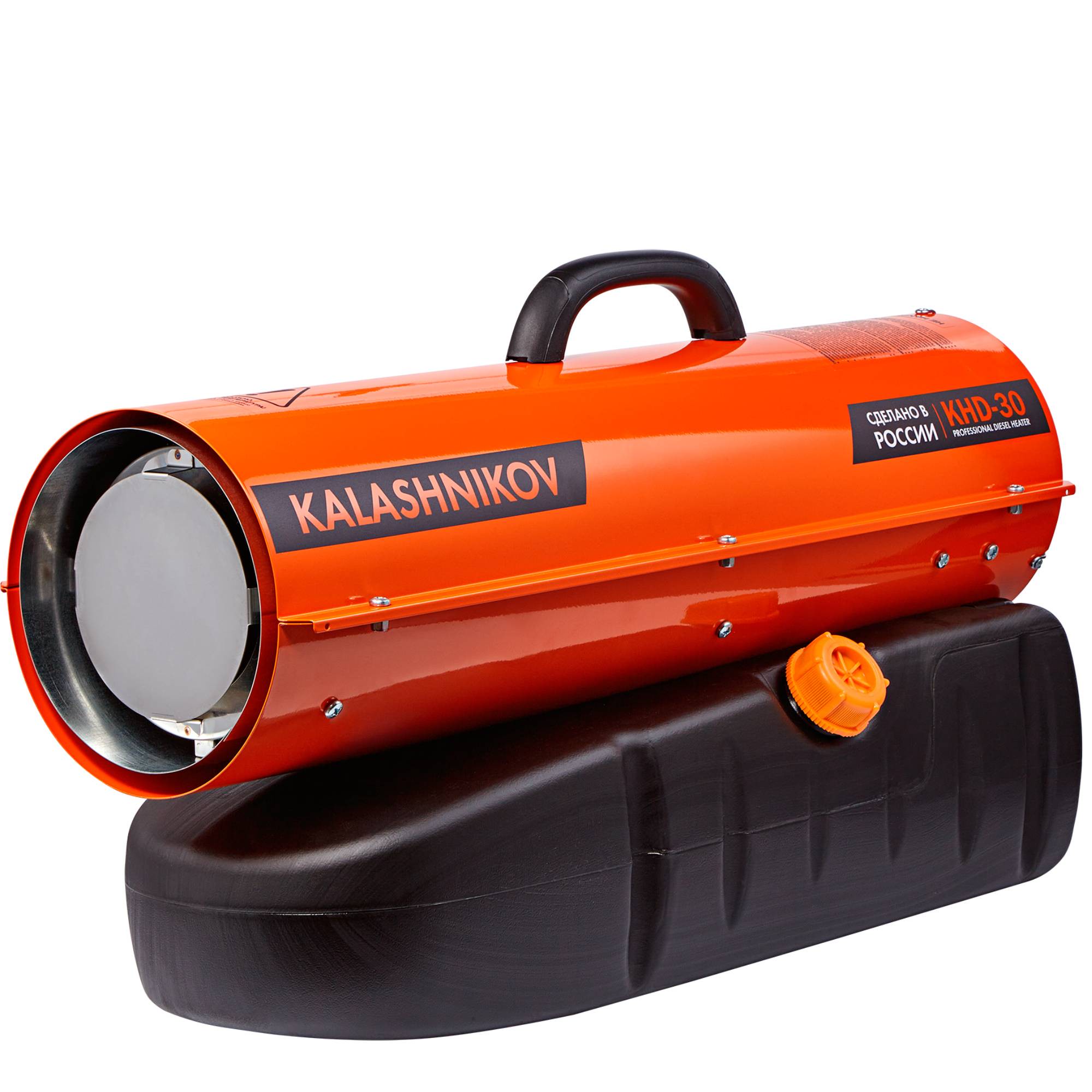 Дизельная тепловая пушка KALASHNIKOV KHD-30 - это мощный обогреватель, работающий на дизельном топливе. Она предназначена для обогрева нежилых помещений и локального прогрева рабочих поверхностей. Высокий уровень КПД прибора близок к 100%, а тепловая мощность 30 кВт, производимая тепловой пушкой - вполне достаточна для использования устройства в качестве мощного генератора тепла.