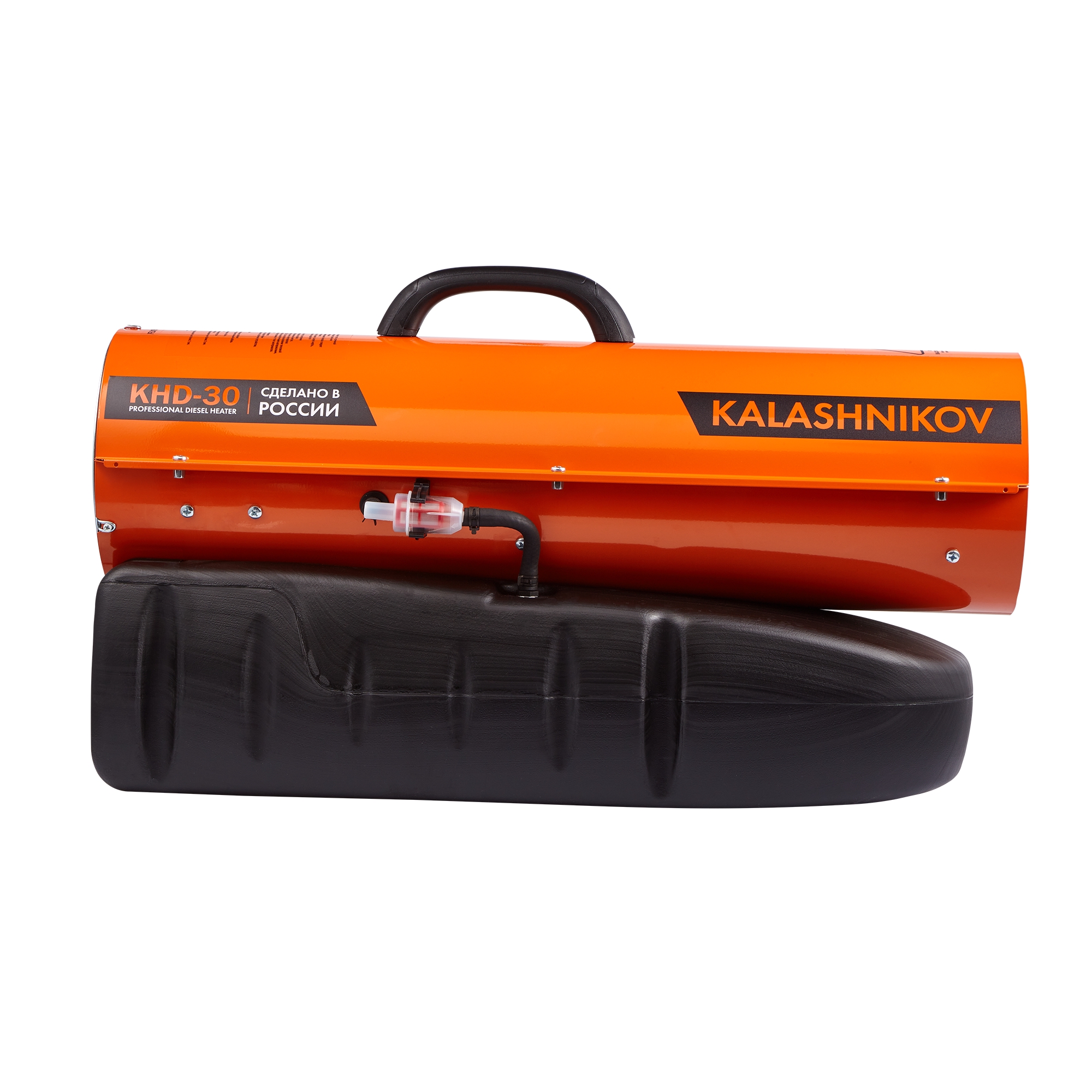 The KALASHNIKOV KHD-30 is a powerful heater that runs on diesel fuel. It is designed for heating unoccupied spaces and local heat treatment of work surfaces. The device has an efficiency level close to 100%, with a thermal power of 30 kW, which is more than enough for using the device as a powerful heat source.