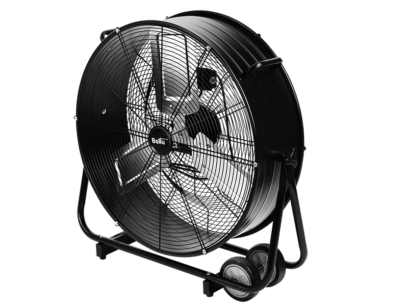 - Вентилятор оснащен колесным шасси и ручками для удобства транспортировки.